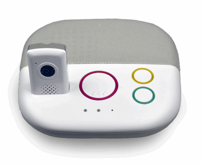 Die Basisstation verfügt über eine hervorragende 2-Wege-Sprachkommunikation und eine große beleuchtete Notruftaste sowie über eine Tages- und eine An-/Abmelde oder Servicetaste.